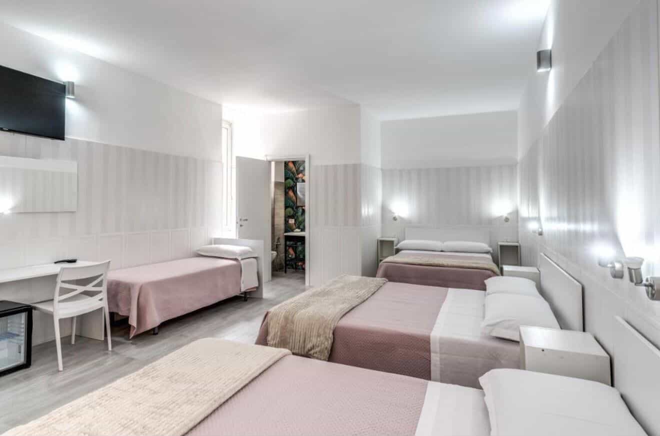 Camera quadrupla per famiglie o gruppi fino a 4 persone, con bagno privato e aria condizionata.
